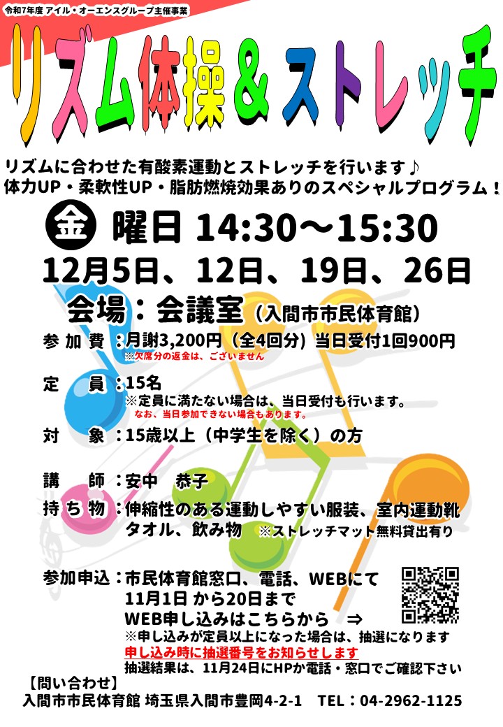11月1日 9:00より 12月開催『リズム体操&ストレッチ』の申込スタート!