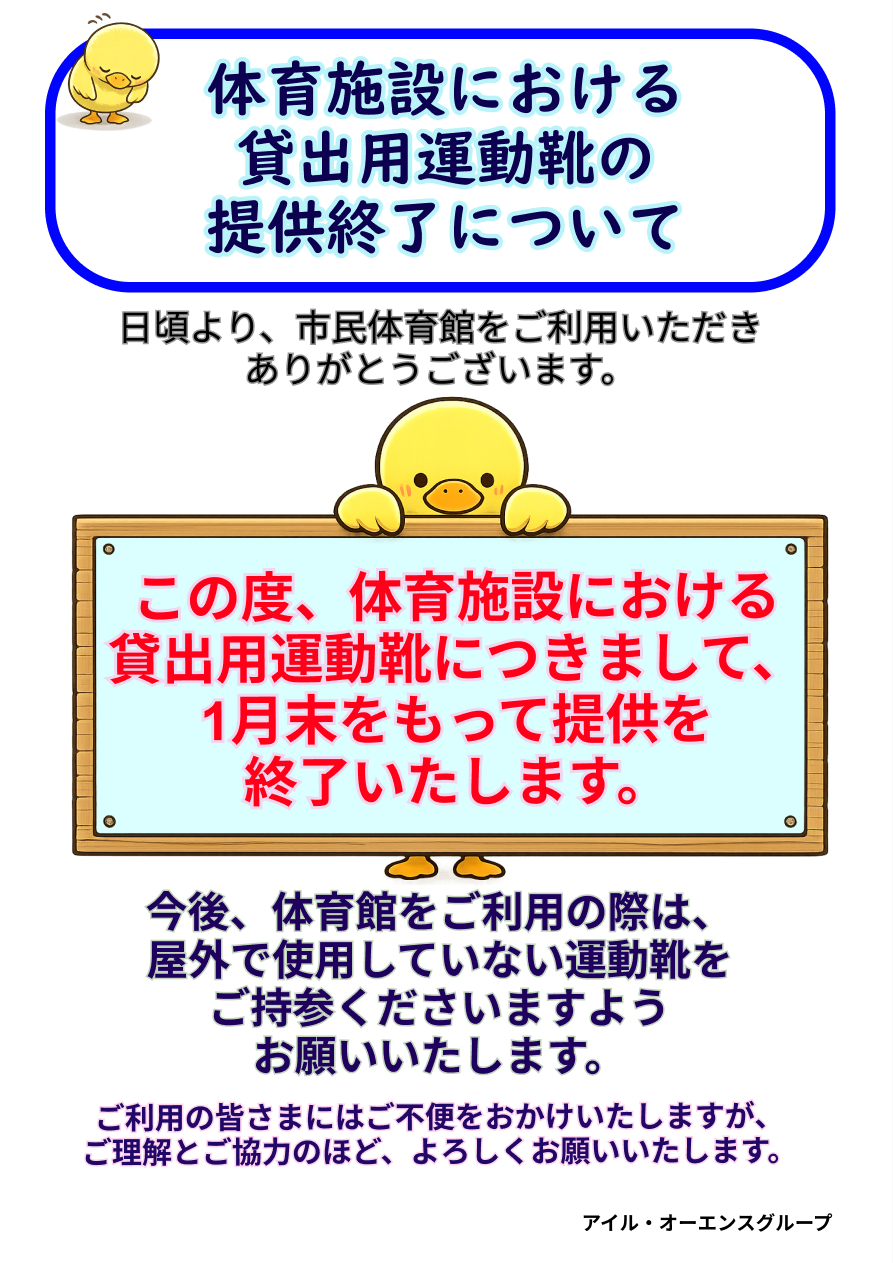 体育施設における貸出用運動靴の提供終了について