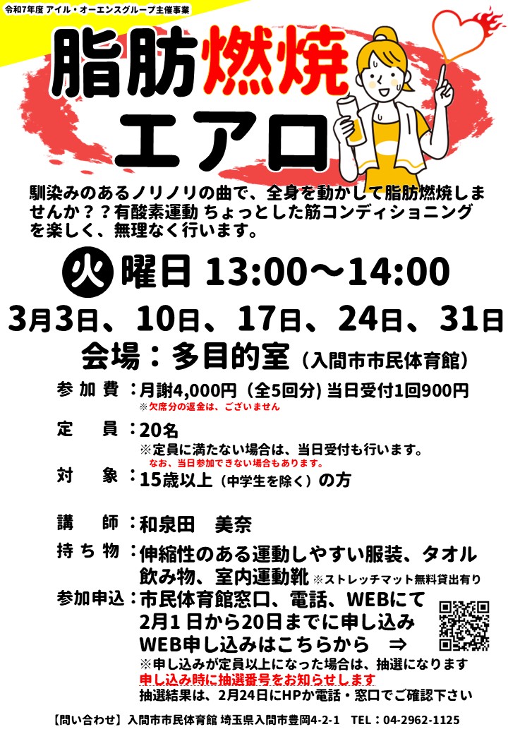 2月1日 9:00より 3月開催『脂肪燃焼エアロ』の申込スタート!