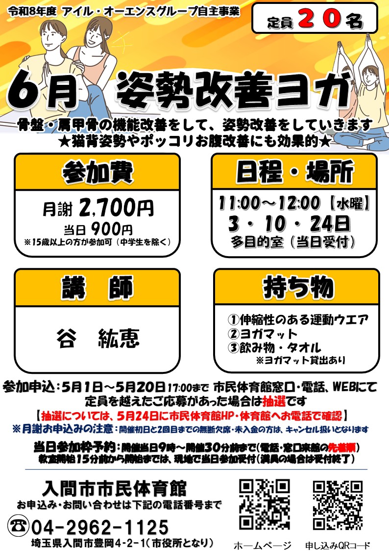 6月開催「姿勢改善ヨガ」申込み開始!