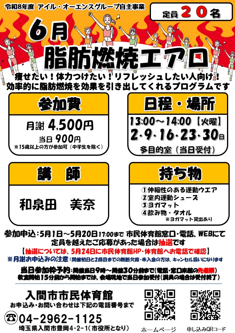 5月1日 9:00より 6月開催『脂肪燃焼エアロ』の申込スタート!