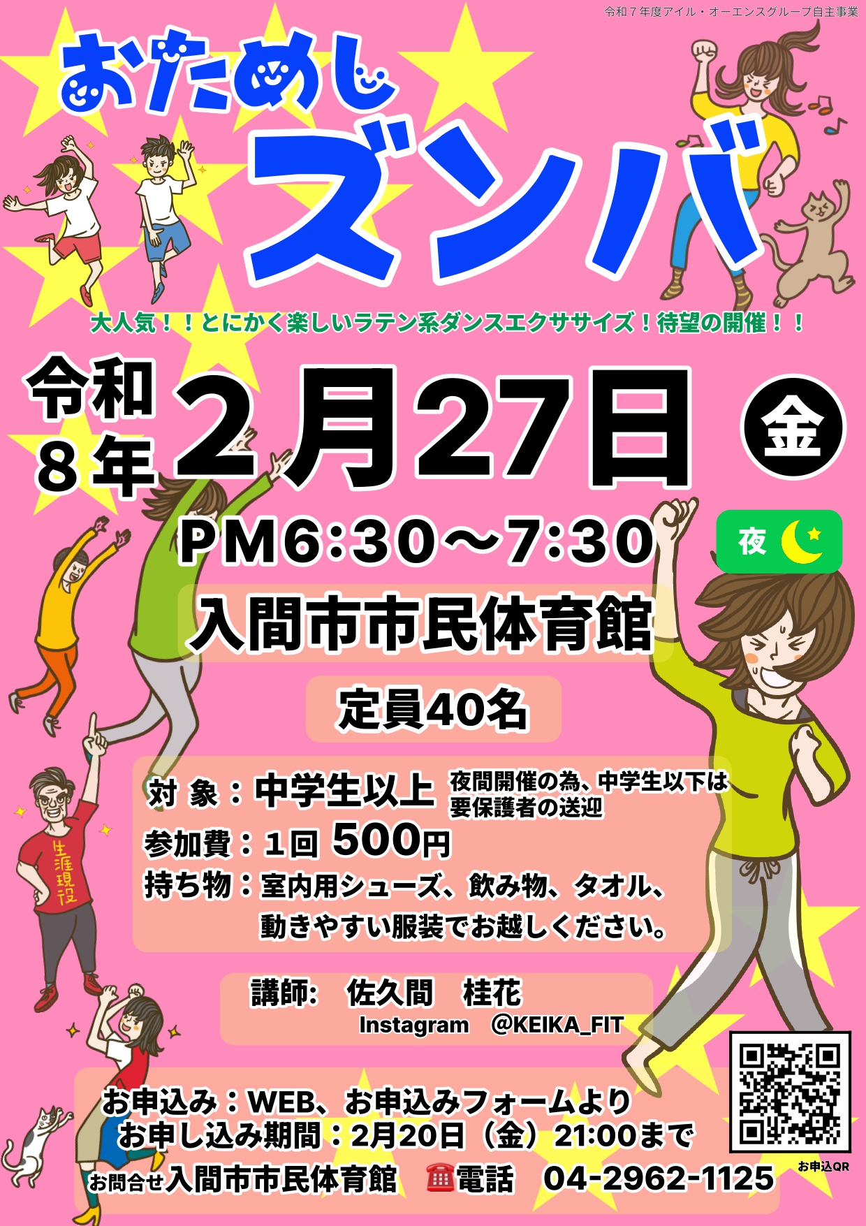 おためしズンバ第2弾は、夜開催! 日中はお仕事だったり、家事や育児に忙しく自分の時間を持てない…。 そんな皆様から要望の多かった夜開催のイベントです! 一日のリフレッシュに!自分開放!ストレス発散に!ぜひ、お越しください。 参加費はおためし価格の500円!!