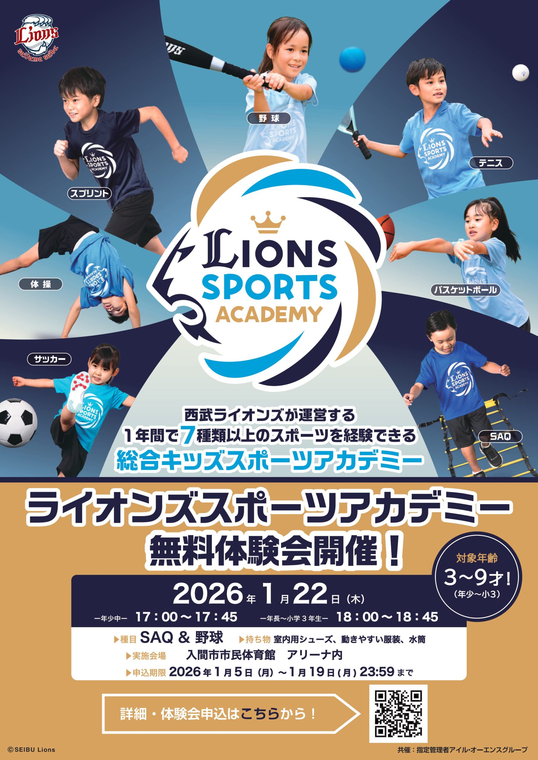 1月5日~1月19日23:59まで 1月22日開催『ライオンズスポーツアカデミー無料体験会』の申込を受付します!