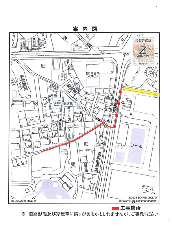 2025年12月16日(火)から2025年12月26日までの期間(うち5日間程度) 9:00~17:00 体育館周辺道路にてガス工事後の舗装本復旧工事が行われます。 体育館にお越しの際はお気を付けください。 案内図上、黄色の箇所は通行止めになります。会館通りは片側交互通行です。 ご理解とご協力の程、よろしくお願いします。