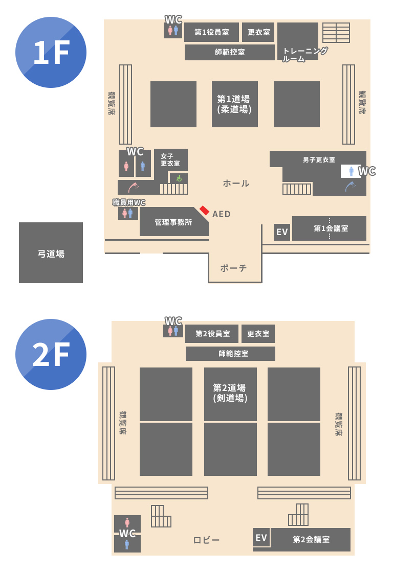 | 第1道場(1/3面) | 午前 9:00~12:00 |