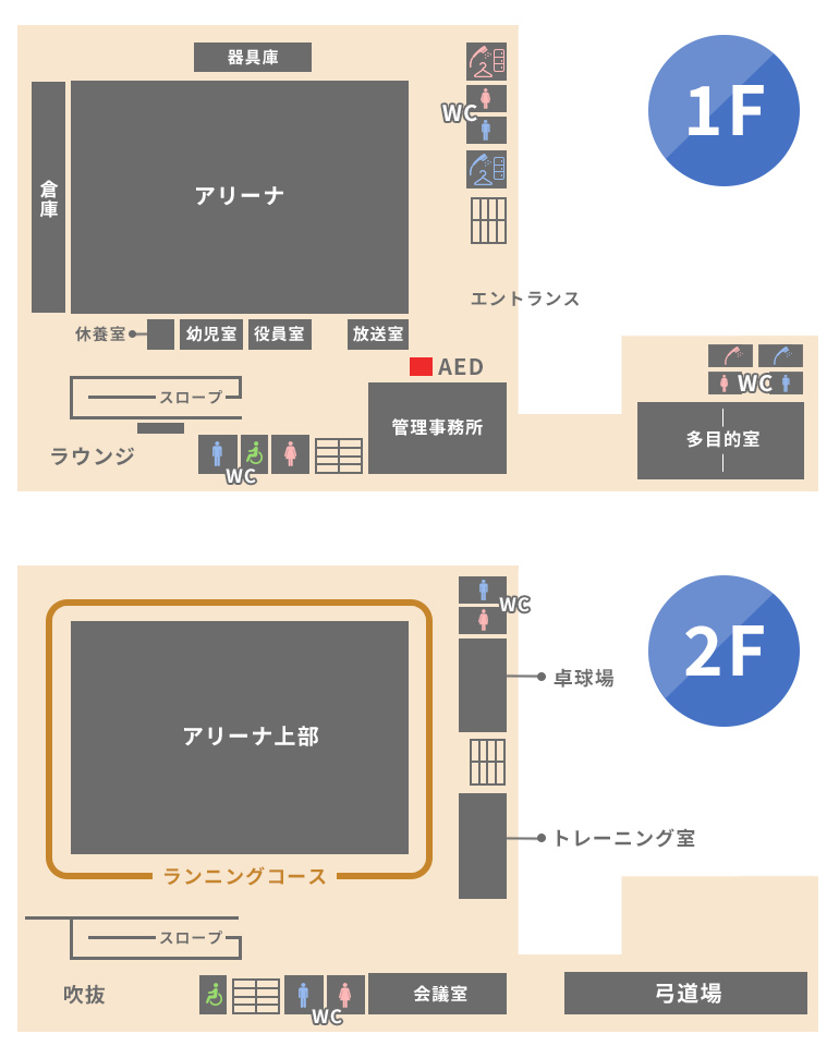 ※体育館の更衣ロッカーは使用時に100円を入れていただきますが、使用後に返却されます。